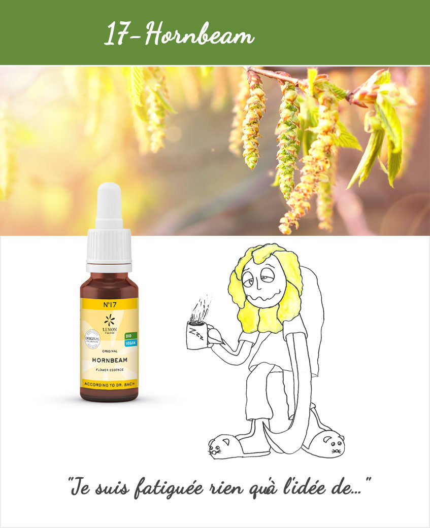 Lassitude Fatigue et/ou lassitude mentale passagère ou durable. On se sent trop faible pour accomplir une tâche quotidienne, mais on n’y arrive malgré tout. Fatigue au réveil, difficulté à se lever. Fatigue mentale. Syndrome du «lundi matin». Tendance à procrastiner. Potentiel Positif: Remède du «starter» qui apporte motivation et engagement dans l’action: on sait rebondir. Vivacité d’esprit, on retrouve son entrain. Remède efficace pour reprendre un activité après un temps de la- tence (maladie, vacances, situation difficile…). Épreuves. Joie intérieure. Cette thérapie florale naturelle a été élaborée par le Dr. Bach au début du siècle passé. Il sélectionne alors 38 fleurs qui nous permettent d’agir sur les émotions spécifiques que nous rencontrons dans notre quotidien et qui peuvent potentiellement nous perturber et ainsi nous empêcher d’aller de l’avant. Cela peut être lié à des chocs, des peurs, un manque de confiance en soi, un manque d’intérêt pour le moment présent, des déceptions ou chagrins, du stress… Nous avons tous des histoires de vie différentes, des schémas de fonctionnement, des croyances limitantes, etc…Parfois cela devient nocif pour nous-mêmes et notre entourage et influe donc sur notre santé et notre bien-être. Consultation Lieu : Nyon/ via Zoom Mon rôle est de découvrir, en collaboration avec mes patients, quelles sont les causes de leur mal être, mais aussi d’identifier les conséquences de ce mal-être, afin de se poser les bonnes questions.. En préventif 3 à 4 gouttes Garder sous la langue 30 secondes avant d’avaler. Brandy* (27% Vol.), eau, essence original de Fleurs de Bach Hornbeam* Nos produits peuvent être associés à tout autre traitement thérapeutique. Les fleurs de Bach se conservent 4 ans à température ambiante. * certifié Bio Les fleurs de Bach sont produites selon les préceptes du Dr. Bach en Angleterre. Culture biologique certifiée. Avec Marianne Deville