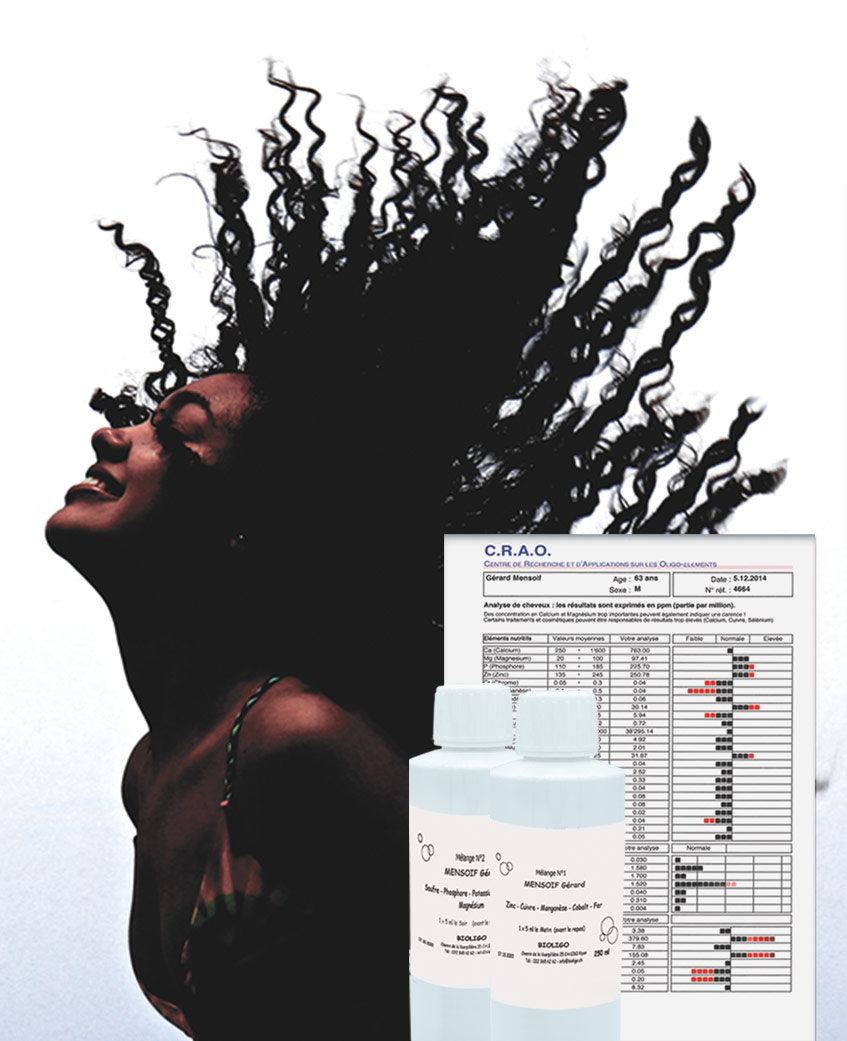 Un bilan minéral complet de votre organisme par l’analyse des cheveux: 24 minéraux + 7 métaux lourds analysés. Cure personnalisée d’oligoéléments avec des mélanges sur mesure, préparés selon vos résultats.