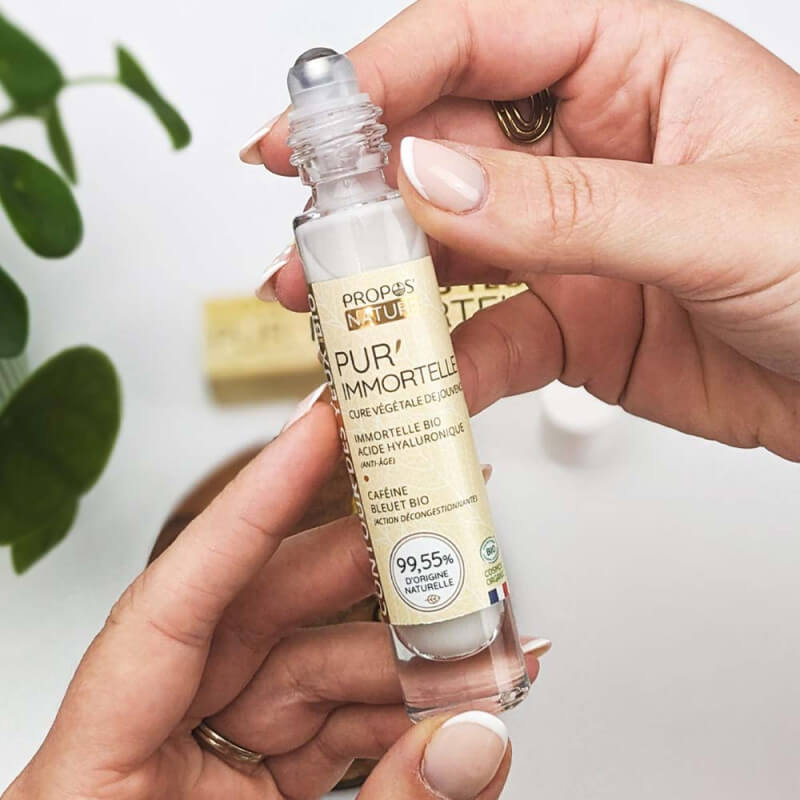 Caféine et hydrolat de Bleuet combinés à l’immortelle pour décongestionner, atténuer les cernes et combattre les ridules autour de vos yeux!