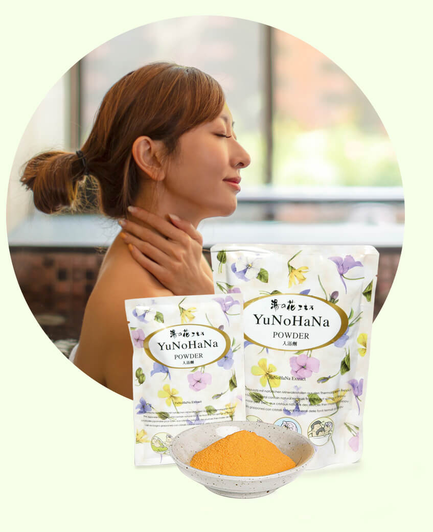 Après un bain de Yunohana, la chaleur corporelle se maintient pendant 30 minutes. Les muscles se relâchent, les douleurs s’apaisent et les courbatures disparaissent.