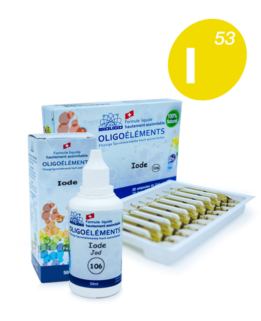 Son métabolisme se passe exclusivement dans la thyroïde qu’il régularise pour la formation d’hormones iodées. Ceux-ci activent les métabolismes des lipides, glucides et protides, stimulent la croissance, contrôlent le métabolisme calcique osseux, l’ensemble des glandes endocrines, le fonctionnement neuro-musculaire, le tonus cardiaque, l’hématopoïèse. Les oligoéléments sont les catalyseurs des fonctions biologiques de l’organisme. Sans eux, pas de fonctions et pas de vie. Les catalyseurs facilitent les fonctions biologiques en diminuant le temps et l’énergie nécessaires à leur réalisation. Récupérés intacts à la fin de la réaction, ils peuvent resservir. En jargon médical, la diathèse, correspond à la nature d’une personne, nature qui lui est propre dès sa naissance. Quelle est votre nature? Notre nature nous prédispose à développer certains types de maladies. Notre mode de vie, nos comportements et notre hérédité ont également une influence sur notre état de santé. En préventif En Intensif Entretien À jeun ou avant les repas, garder sous la langue 30 secondes avant d’avaler. Adulte: 2ml Nos produits sont naturels et fabriqués en Suisse dans notre Laboratoire à Nyon Il n’est pas judicieux de ne privilégier que les aliments riches dans l’oligoélément carencé, cela pourrait générer d’autres déséquilibres : l’idéal réside en une alimentation saine et équilibrée. Le sel de table enrichi en iode (généralement 70 mcg/g) permet un apport adéquat (150 mcg/jour). Les besoins sont plus importants chez la femme enceinte (220 mcg/jour) et allaitante (290 mcg/jour). Végétales: dattes, carottes, oignons, asperges, épinard, choux. thé. Animales: poissons de mer. contenant de l’iode Avec Frédéric Deville