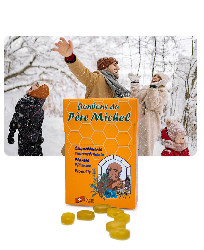 Aucun métabolisme ne peut se résumer à une seule réaction indépendante du reste de l’organisme. Des fonctions aussi complexes que la digestion, l’immunité, la résistance nerveuse ne sauraient être rétablies avec l’apport d’un seul élément. C’est pour cette raison que tout conseil d’oligoéléments comporte nécessairement plusieurs oligoéléments. L’association cuivre-or-argent est souvent utilisée pour les déficits immunitaires et d’anergie. Le magnésium est un élément essentiel qui catalyse nombre de fonctions enzymatiques. Il est impliqué dans de nombreux métabolismes : la coagulation, la thyroïde, l’immunité (il semble indispensable à une synthèse correcte des anticorps). Le zinc est indispensable à l’enzyme qui protège nos cellules des ions superoxydes Il règne, dans la ruche une température élevée (entre 34-35°) et un taux d’humidité entre 50% et 70%, conditions très favorables aux bactéries. C’est pourquoi, les abeilles amalgament la propolis à de la cire pour la protéger. Eucalyptus Cajeput Thym rouge Niaouli En préventif : En Intensif: En Entretien: Adultes : Oligoéléments: cuivre, or, argent, magnésium, manganèse, zinc Nos produits peuvent être associés à tout autre traitement thérapeutique. Notre produit se conserve 4 ans après fabrication. Nos produits sont naturels et fabriqués en Suisse dans notre Laboratoire à Nyon En jargon médical, la diathèse, correspond à la nature d’une personne, nature qui lui est propre dès sa naissance. Connaître sa nature permet de connaître ses faiblesses de même que prévenir vaut mieux que guérir. Il ne faut surtout pas les ingérer à l’état pur. Elles ont des propriétés curatives multiples, mais leur puissance les rend également dangereuses. Oui, même aux nourrissons, il suffit d’adapter le dosage. Le sirop peut être complémentaire à tout traitement médical également. Non, il a le goût, l’odeur et la couleur de ses composants. Entièrement naturel, sa consistance peut légèrement varier d’une fabrication à l’autre. Avec Frédéric Deville