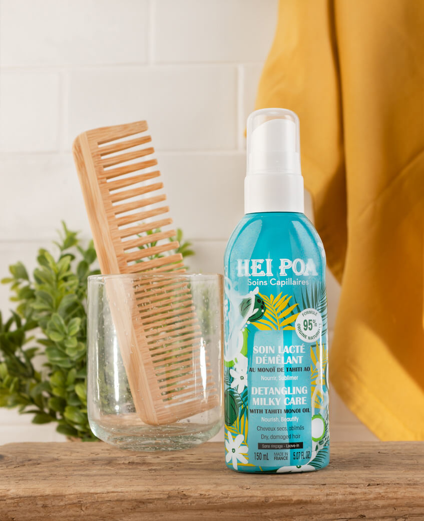 Monoï Fleur de tiaré Huile de ricin Esters de Jojoba Avec l’action adoucissante du jojoba pour un coiffage facile et un cheveux souple et brillant. Grâce au acides gras du monoï, il réhydrate le cuir chevelu et le cheveu. Enrichi en huile de monoï et ricin, il revitalise le cheveu en profondeur. L’envoûtement de la fleur de Tiaré et de la coco pour parfumer AQUA (WATER) / EAU, COCOS NUCIFERA (COCONUT) OIL, PROPANEDIOL, RICINOLEAMIDOPROPYL DIMETHYLAMINE, C14-22 ALCOHOLS, POLYGLYCERYL-6 DISTEARATE, GLYCERIN, BEHENTRIMONIUM CHLORIDE, PARFUM (FRAGRANCE), GARDENIA TAITENSIS FLOWER EXTRACT, JOJOBA ESTERS, PANTHENOL, PHYTANTRIOL, TOCOPHEROL, C12-20 ALKYL GLUCOSIDE,CETEARYL ALCOHOL, CETYL ALCOHOL, GLYCERYL STEARATE, INULIN LAURYL CARBAMATE, LAURYL ALCOHOL, MYRISTYL ALCOHOL, POLYGLYCERYL-3 BEESWAX, POLYQUATERNIUM-10, SORBITAN ISOSTEARATE, ACRYLAMIDOPROPYLTRIMONIUM CHLORIDE/ACRYLATES COPOLYMER, COCETH-7, ISOHEXADECANE, CAPRYLYL GLYCOL, ETHYLHEXYLGLYCERIN, CITRIC ACID, BENZYL SALICYLATE, LIMONENE, HYDROXYCITRONELLAL,ISOEUGENOL. Utilisation Si vous avez les cheveux frisés ou crépus, appliquez un soin nourrissant 2 heures avant votre shampoing pour rendre votre cheveu encore plus souple. HeiPoa privilégie la production Polynésienne avec 95% d’ingrédients d’origine naturelle. HeiPoa a choisi des emballages en plastique 50% recyclés et avec 13% de plastique en moins. Le monoï est un soin naturellement hydratant et régénérant pour tous les types de peaux. Un savoir ancestral Les noix de coco sont récoltées dans les cocoteraies verdoyantes de la Polynésie, elles sont sélectionnées et séchées au soleil. Les boutons de fleurs fraiches de Tiaré sont cueillis à l’aube et mis en macération dans l’huile de coco obtenue par pression, à raison de 10 fleurs par litre. Pendant quelques jours, les fleurs de Tiaré vont distiller leur arôme dans l’huile jusqu’à obtenir le véritable Monoï de Tahiti.