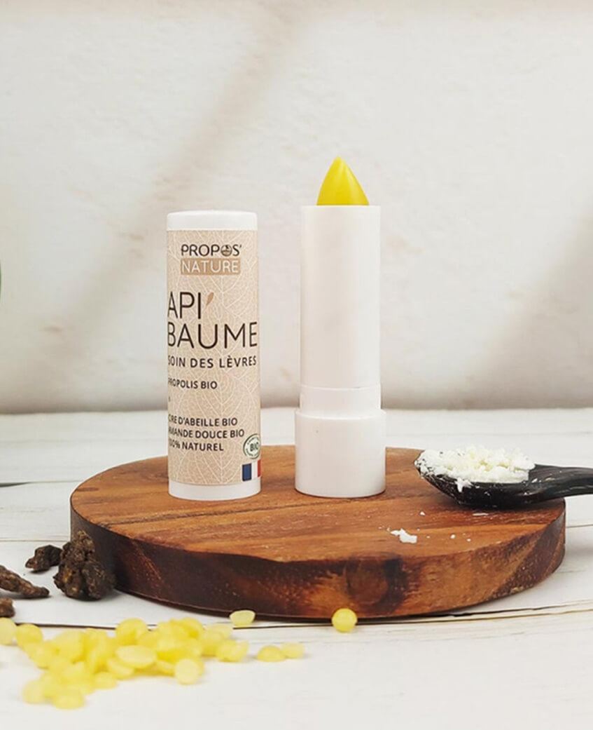 Propolis, beurre de karité additionnés de 5 huiles végétales dans ce stick BIO qui nourrit et hydrate en profondeur vos lèvres.
